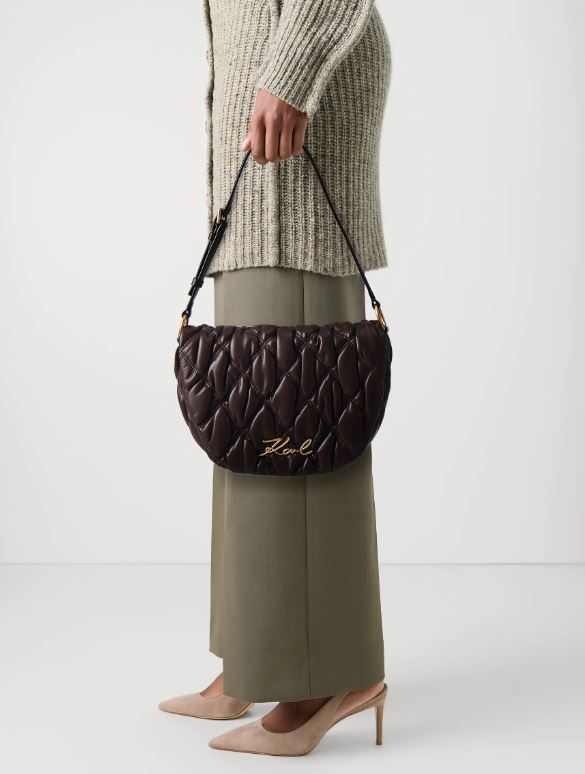 Bolso Karl Lagerfeld SIGNATURE KUILT FLAP chocolate oscuro