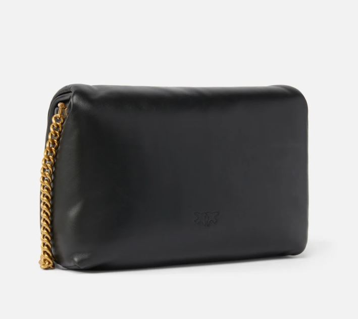 Classic Love Bag Click Puff de suave piel de napa. El cierre a presión invisible presenta la icónica hebilla Love Birds Diamond Cut de metal con efecto calado revestida en la misma napa que el bolso. El interior cuenta con un forro de gamuza de microfibra, un compartimento con cremallera y un bolsillo abierto. La correa para el hombro combina la clásica cadena redonda de metal con una práctica correa para el hombro ajustable de cuero. Activa tu bolso PINKO: verifica la autenticidad de tu artículo y accede a una experiencia personalizada acercando tu smartphone al bordado Love Birds en la parte posterior del bolso.