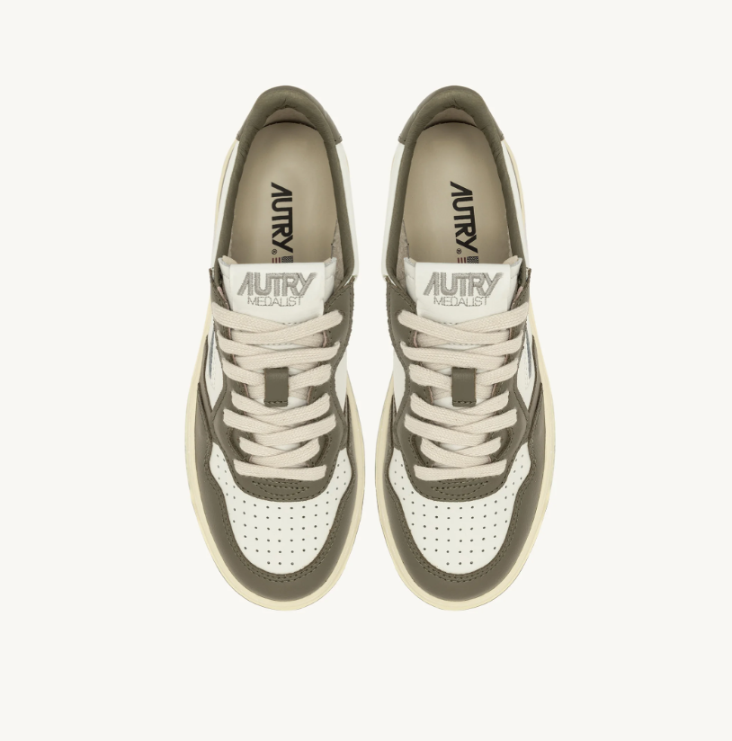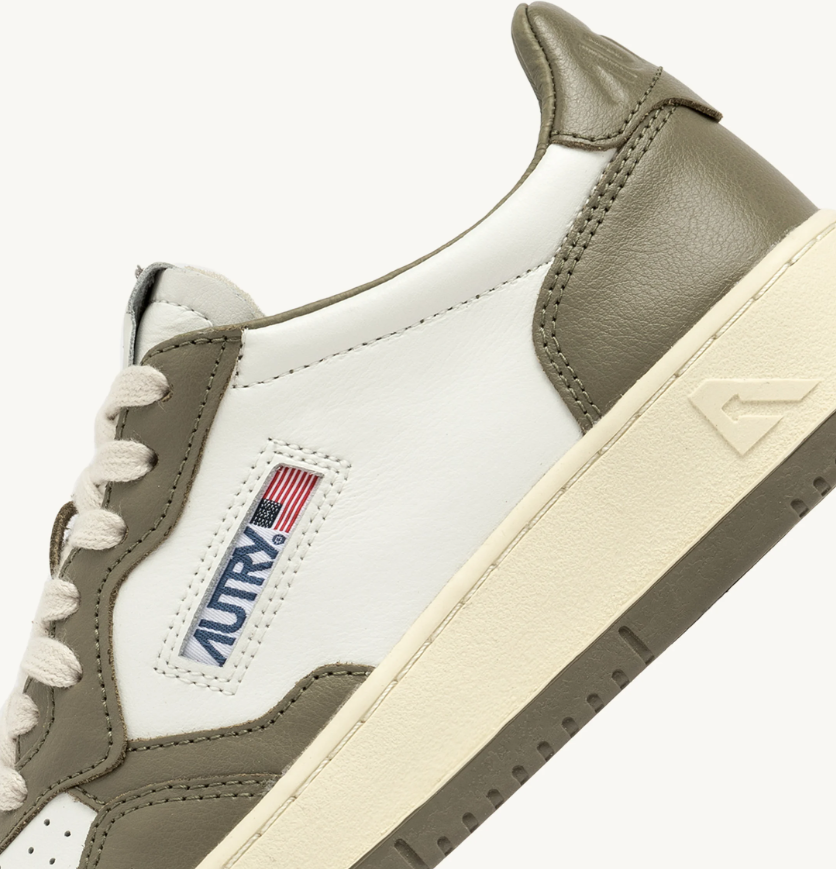 ZAPATILLAS MEDALIST LOW CUERO BICOLOR BLANCO Y VERDE MILITAR