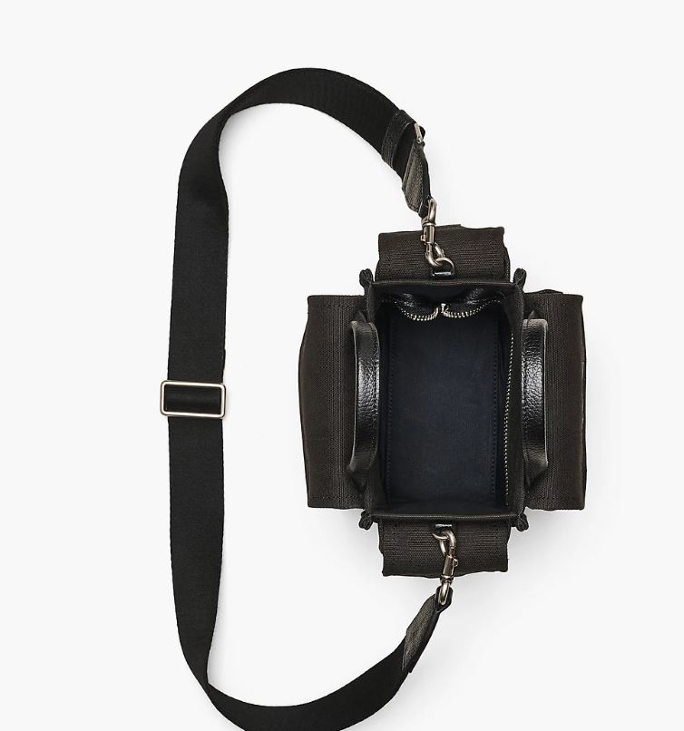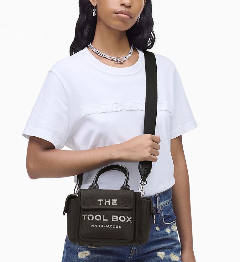 Inspirada en diseños de pasarelas de archivo, The Tool Box presenta una divertida etiqueta que dice: “LA BOLSA DE MARC JACOBS NO ES PARA CONTENER HERRAMIENTAS REALES PORQUE NO SABEMOS NADA SOBRE REPARAR ARTÍCULOS ROTO. » Sus bolsillos con velcro y su base resistente lo convierten en el bolso imprescindible para el día a día. Llévelo por las asas superiores o ajústelo a la correa tejida ajustable y extraíble para el hombro.