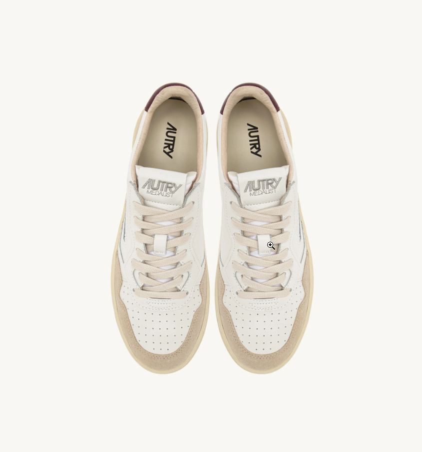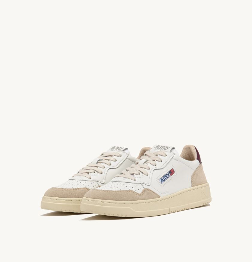 ZAPATILLAS MEDALIST LOW DE ANTE Y PIEL BLANCAS Y BURGUNDY
