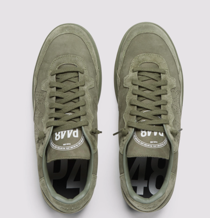 El Vert All Green presenta nubuck y ante verde militar en su totalidad, con cordones de algodón verde militar a juego para unirlo todo. Nuestras exclusivas suelas de goma P448 verde militar están diseñadas pensando en los skaters, con dibujo en espiga y punto de pivote para un agarre superior y máxima comodidad.