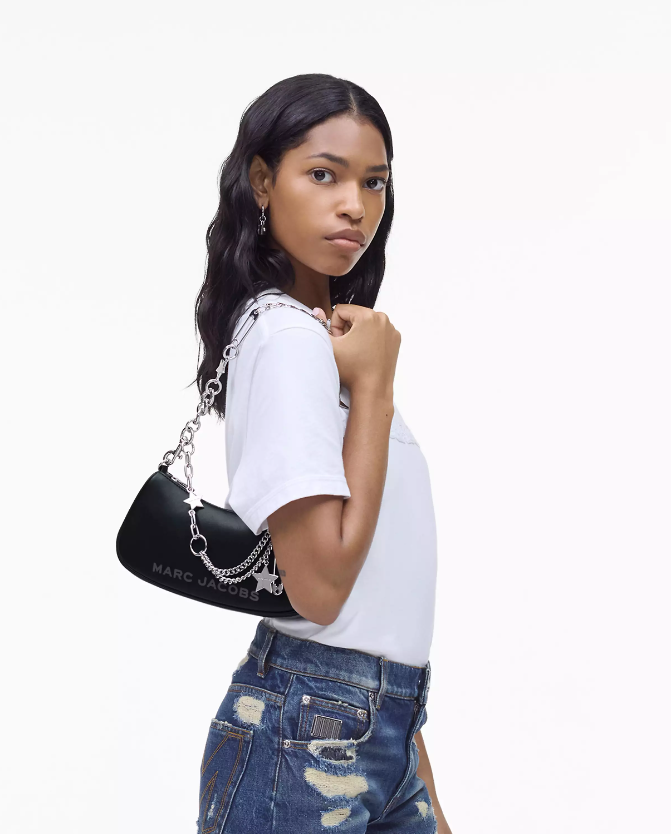 Elegantemente alegre y perpetuamente juvenil, el Star Charm Shoulder Bag destila el inconfundible espíritu de Marc con una novedosa silueta diseñada para un cómodo estilo sobre el hombro. Elaborado en piel lisa, este bolso cuenta con una correa de hombro de piel extraíble y una correa de cadena de varias capas adornada con colgante, que puede colocarse para un estilo elevado sobre el hombro o como toque decorativo drapeado.