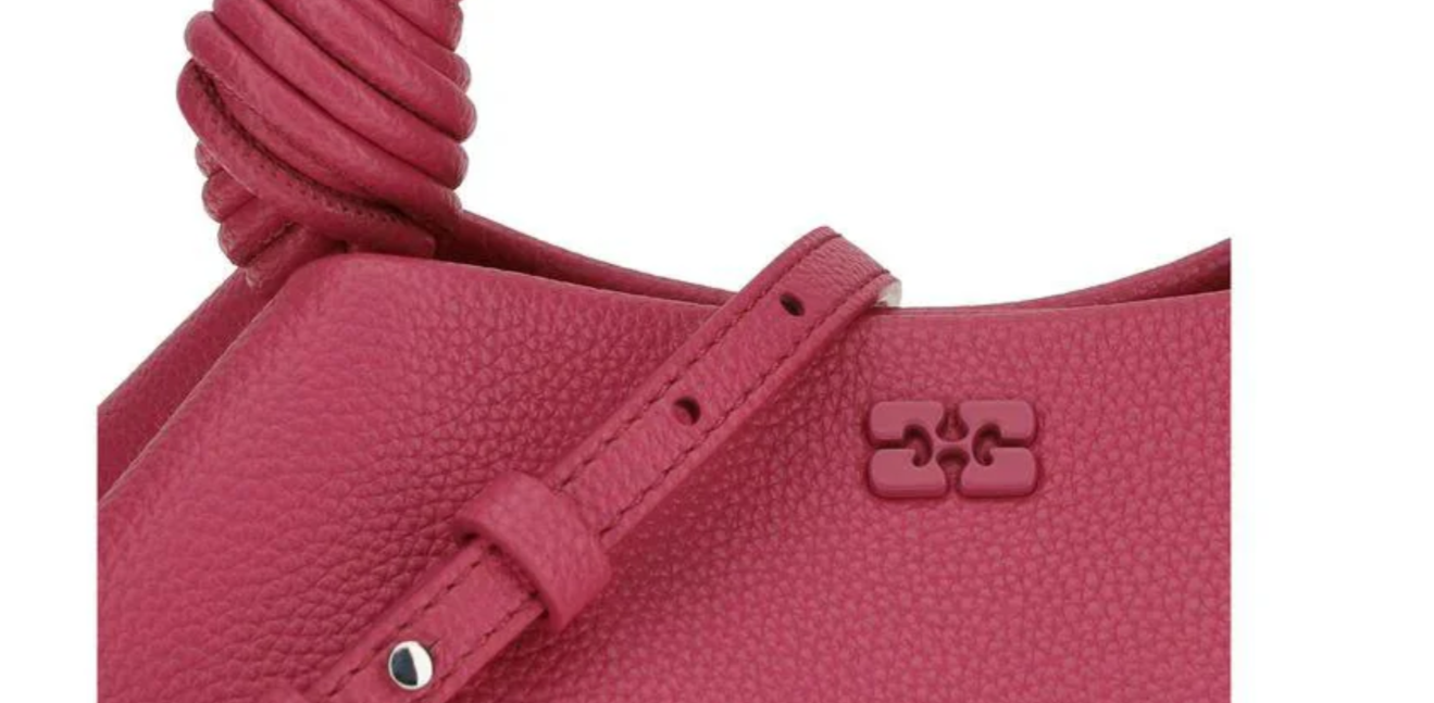 El pequeño bolso Bou de Ganni, con su textura granulada, combina elegancia y funcionalidad en un diseño compacto. Luce el logotipo de la mariposa de Ganni tono sobre tono y el logotipo grabado en la parte posterior. Cuenta con un asa superior trenzada con nudo, una correa para el hombro ajustable y extraíble, y tuercas metálicas grabadas con los logotipos de Ganni y la mariposa. El cierre magnético interno y dos compartimentos interiores completan el bolso, ofreciendo practicidad y estilo.