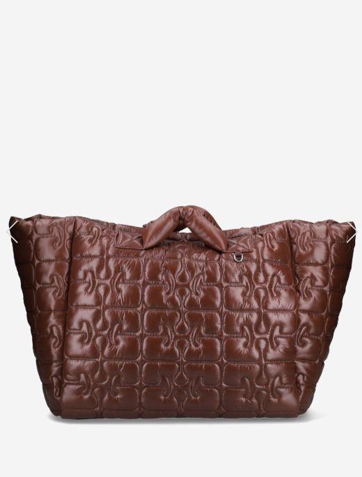 Bolso shopper marrón de Ganni llamado Re-Tech, bolso tote acolchado - Chicory Coffee 979 - B2080003. Acabado con correa para el hombro y bolsillo interior. Material: 100 % poliamida reciclada. Dimensiones: 59 x 34 x 29 cm