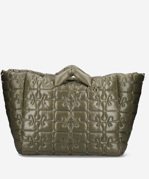 Bolso de compras ecológico de Ganni, el tote acolchado Re-Tech - Kalamata 861 - B2080003. Incluye correa para el hombro y bolsillo interior. Material: 100 % poliamida reciclada. Dimensiones: 59 x 34 x 29 cm.