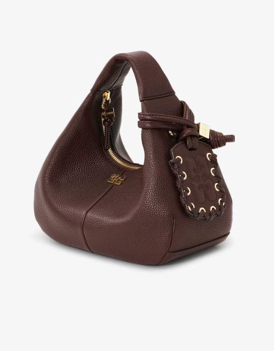 Este bolso cuenta con un asa superior, una correa ajustable y extraíble y cierre de cremallera. Incluye una etiqueta con espejo y un bolsillo interior.