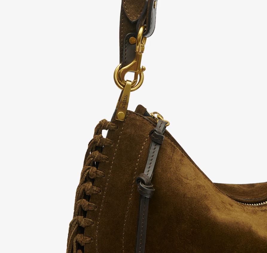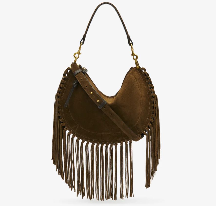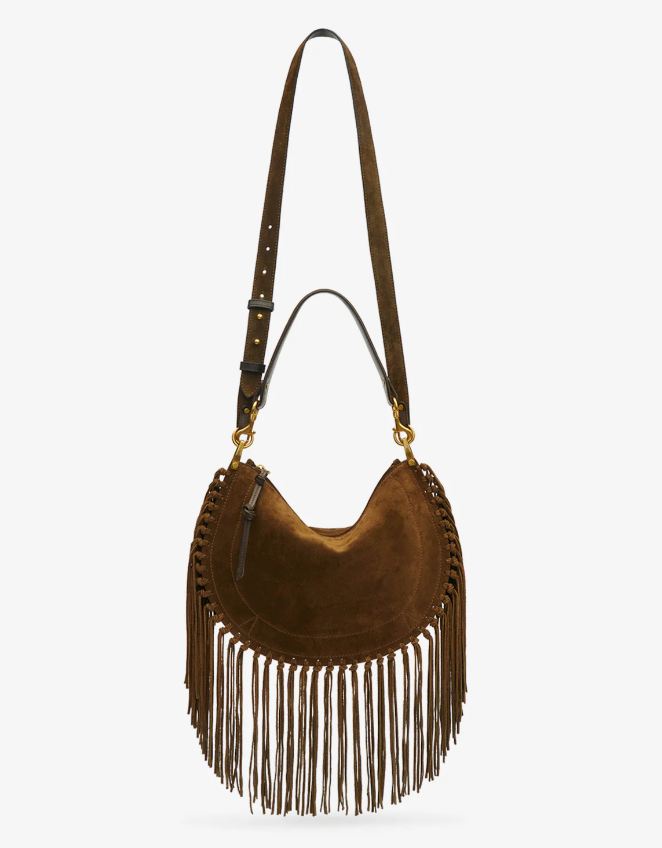 bolso mano piel ante de becerro con flecos oskan hobo zip bronce