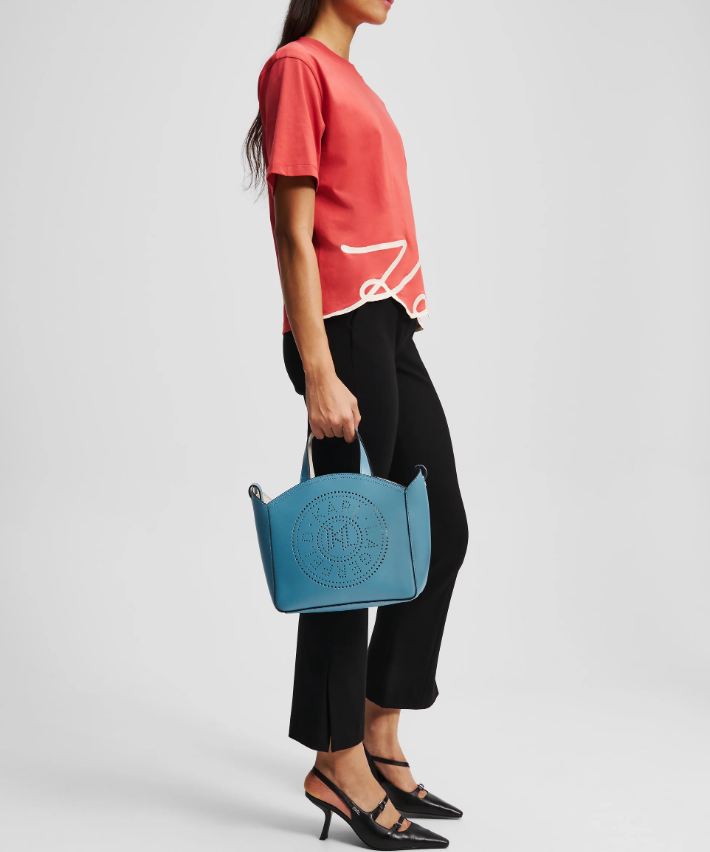 Este bolso tote K/Circle de lujosa piel presenta un diseño perforado y un elegante cierre magnético. La elegancia se combina con la funcionalidad gracias a las dos asas y la correa de tejido extraíble.