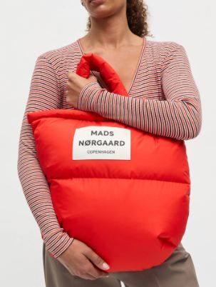 Bolso shopper suave y liso de estilo acolchado con dos juegos de asas de diferentes longitudes y un bolsillo interior.