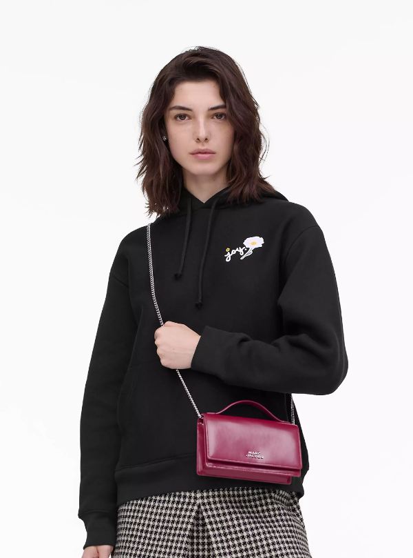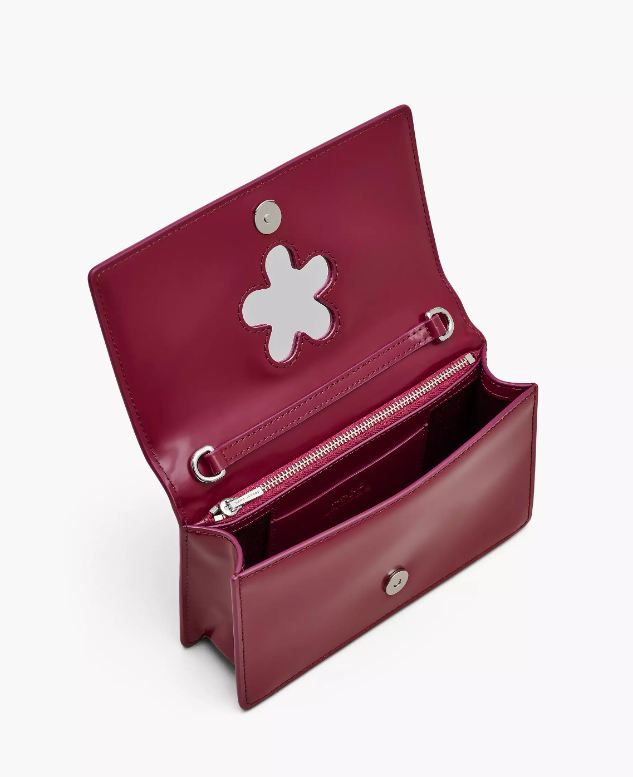 Elegante, estructurada y de alto brillo. El minibolso Glam Mirror está confeccionado en piel Spazzolato brillante y acabado con líneas limpias y detalles juguetones. El asa superior y la correa de cadena extraíble ofrecen múltiples opciones de estilo: llévela como bandolera, bolso de mano, bolsa o miniasa superior. En el interior, un espejo en forma de margarita facilita los retoques sobre la marcha, mientras que un bolsillo con cremallera y una ranura para tarjetas mantienen organizados los objetos esenciales. Compacta en tamaño, audaz en impacto.