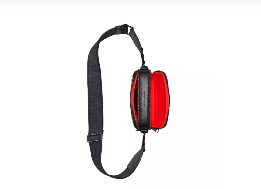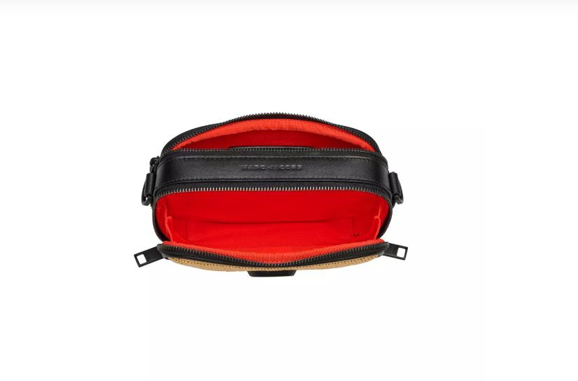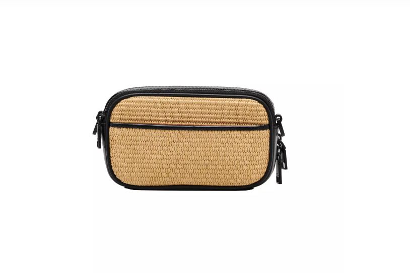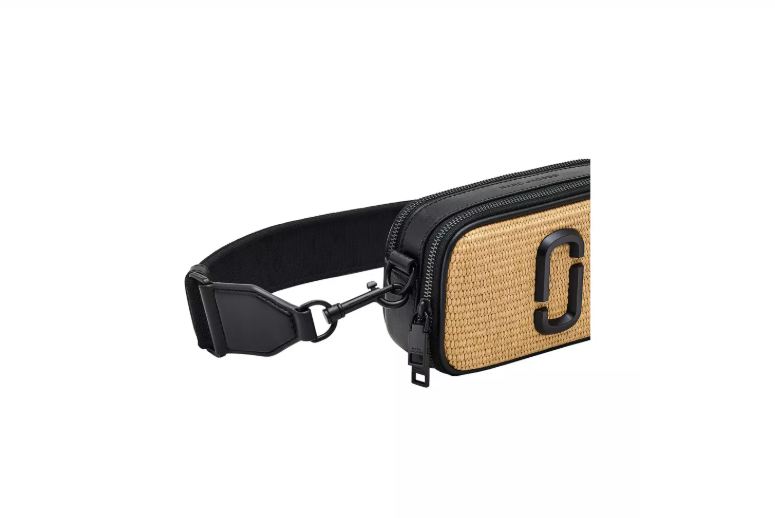 Bolso negro y beige de Marc Jacobs. Estilo bolso de cámara, confeccionado en algodón negro y rafia beige. Decorado con el logotipo metálico de Marc Jacobs en la parte delantera. Dos compartimentos con cremallera y un bolsillo exterior. Correa de hombro ajustable negra con el logotipo. Dimensiones: Ancho: 19 cm, Profundidad: 4 cm, Alto: 15 cm.