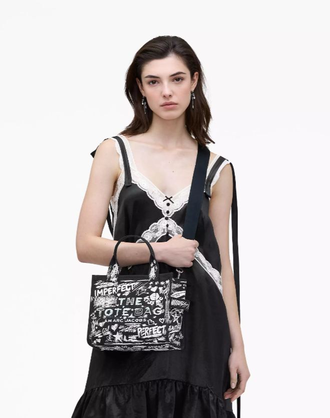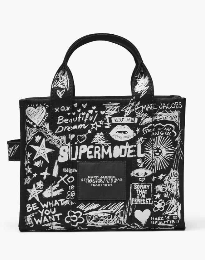 Nuestro atemporal bolso tote presenta un estampado garabateado inspirado en el punk y presenta diseños de los tatuajes de Marc. Confeccionada en lona de algodón texturizada, esta silueta está pensada para desteñirse y relajarse con el paso del tiempo para conseguir un aspecto auténticamente desgastado que al propio Marc le encanta llevar. Un grueso cierre de cremallera superior hace que este bolso sea pequeño pero poderoso. Se puede llevar por las asas superiores o con la correa cruzada ajustable y extraíble para tener las manos libres.