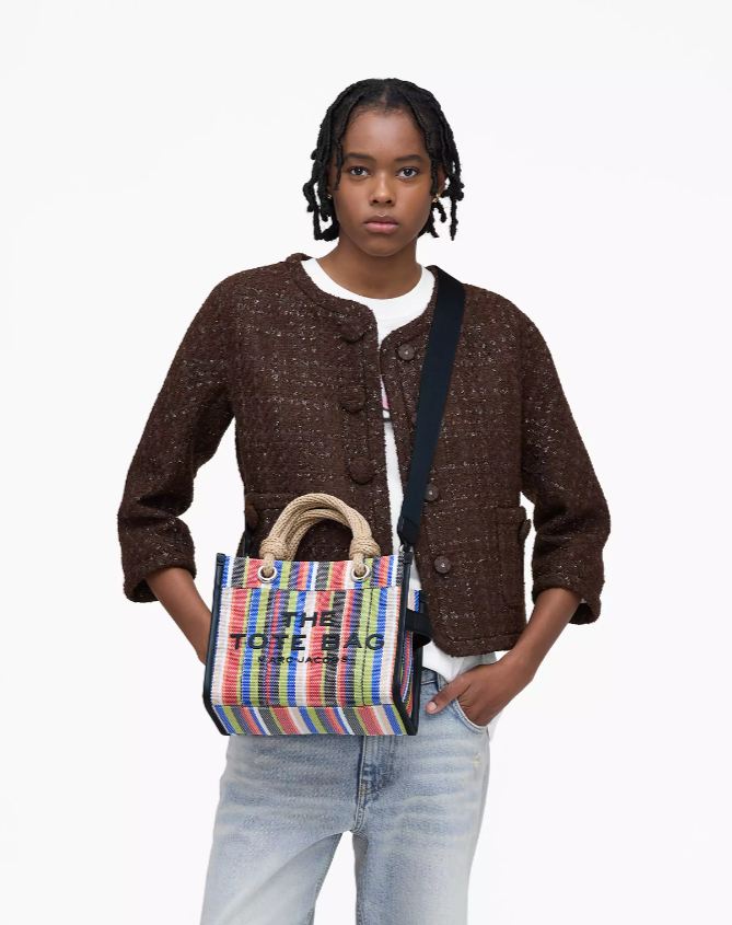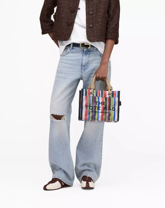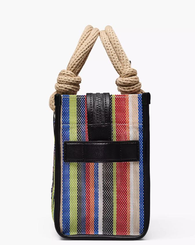 Utilitario y, al mismo tiempo, elevado. Este bolso hace que cada día se sienta extraordinario. Este icónico bolso tote está inspirado en los archivos de Marc y es para mucho más que para hacer recados. Pieza confeccionada en malla a rayas arcoíris con adornos y detalles de piel. Las asas superiores de cuerda anudada facilitan su transporte. Un cierre de cremallera superior mantiene todo seguro. En el interior, un bolsillo interior de ranura para un almacenamiento adicional.