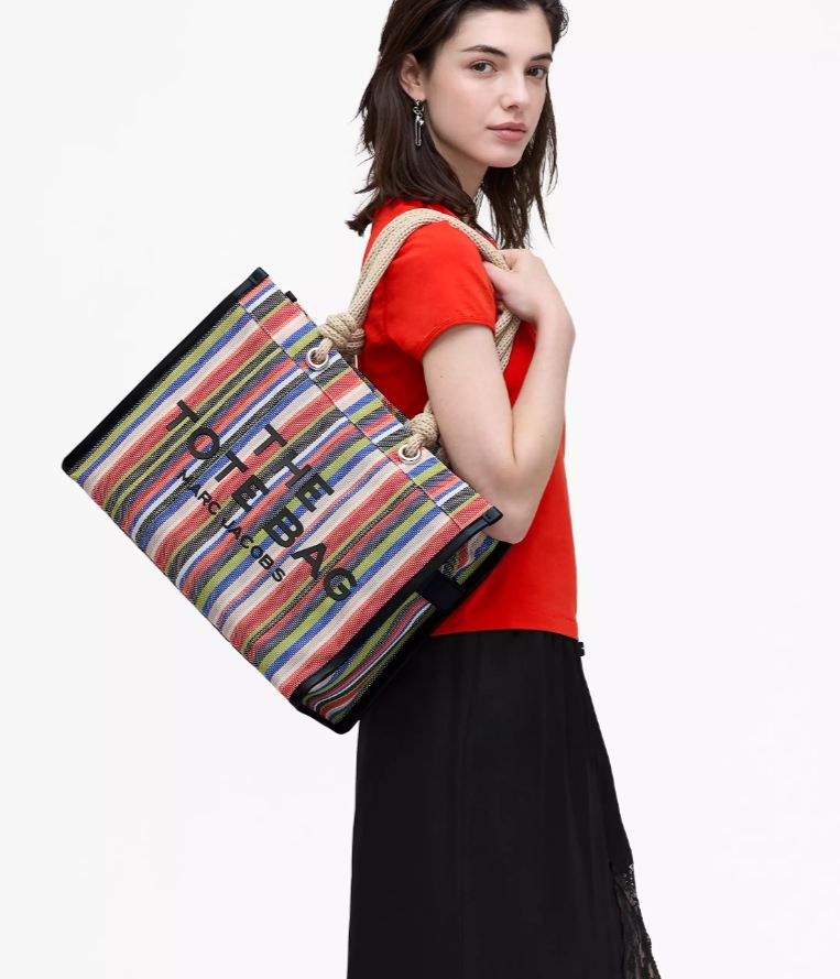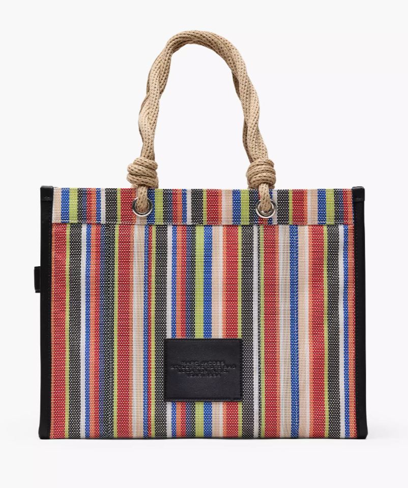 Utilitario y sofisticado a la vez. Este bolso playero hace que el día a día se sienta extraordinario. Este icónico bolso tote está inspirado en los archivos de Marc y es para mucho más que recados. Fabricado en malla arcoíris a rayas con ribetes y detalles de cuero. Las asas superiores de cuerda anudada facilitan su transporte. Un cierre de cremallera superior lo mantiene todo seguro. En el interior, encontrarás un bolsillo con cremallera y dos bolsillos laterales.