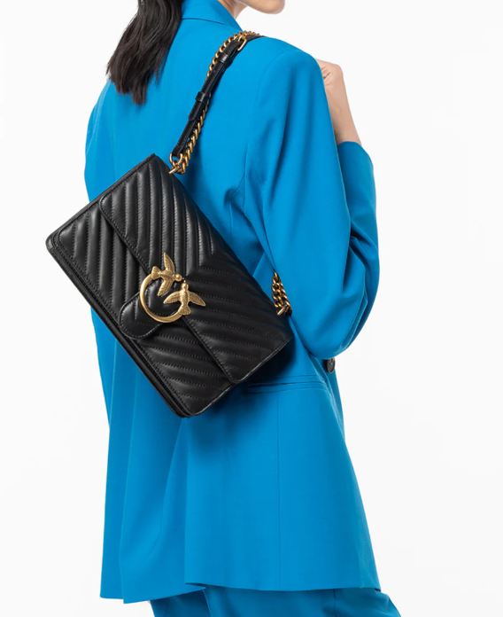 Bolso Classic Love Bag One de napa acolchada con motivo de chevrón. El cierre se completa con la emblemática hebilla Love Birds Diamond Cut de metal. El interior presenta un forro de microfibra de efecto ante e incluye un panel divisorio con cierre de cremallera y un bolsillo interno de piel. La correa combina la clásica cadena redonda con una práctica tira ajustable de piel. - LOVE ONE CLASSIC DC