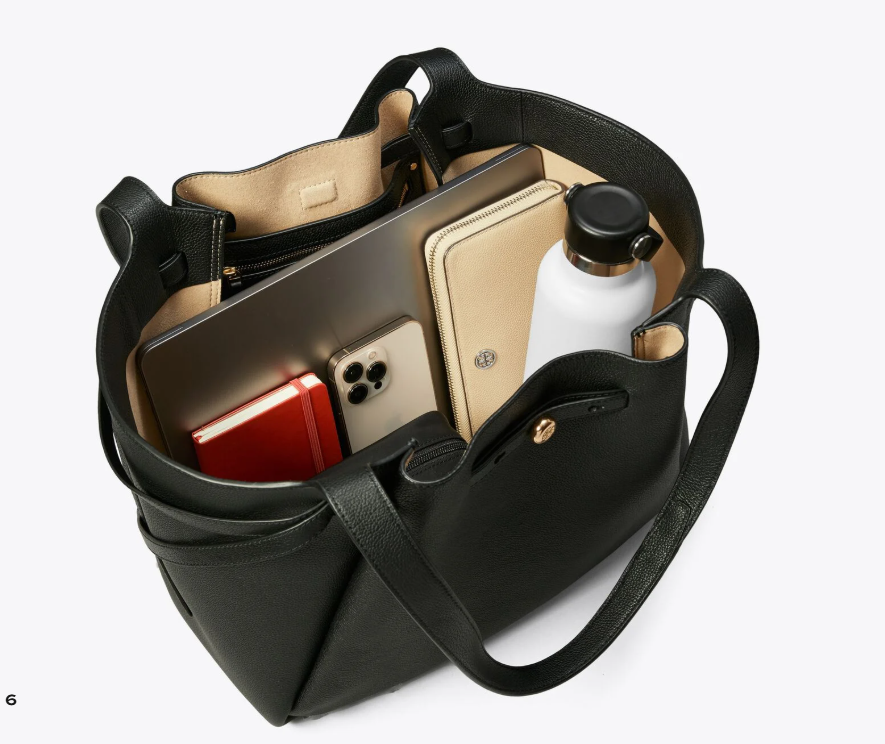 El bolso ideal para el día a día. El Romy Tote está confeccionado en suave piel granulada con una silueta delicadamente fruncida. Ligero y con un amplio interior organizado con un profundo bolsillo con cremallera, cabe un teléfono, una cartera, una botella de agua, un cuaderno y un portátil. Incluye un cinturón fino y nuestro nuevo logotipo de botón. Este bolso, que también puede usarse como equipaje de mano, cuenta con una correa ancha para el hombro para mayor comodidad.