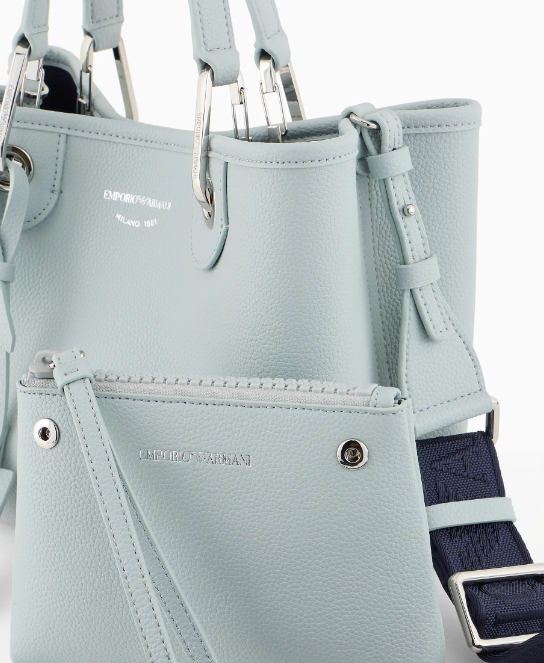 Bolso shopper modelo pequeño con estampado de ciervo, cierre magnético y logotipo serigrafiado. Un accesorio decorado con mosquetones dorados y etiqueta extraíble a juego con inscripción de logotipo en relieve. Provisto de bolso de mano interior a juego con cremallera y bandolera extraíble con logotipo. Este artículo pertenece a la línea MyEA, la propuesta de Emporio Armani de bolsos icónicos y exclusivos que son los más representativos de la firma. Elige el modelo y complétalo con los accesorios de la línea que mejor te reflejen.