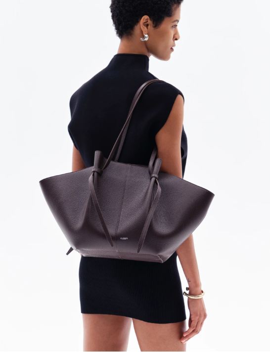 El bolso Mochi grande es nuestro bolso tote de uso diario de alta gama. Este bolso luce las distintivas curvas orgánicas, pliegues y nudos de Yuzefi, y está confeccionado en lujosa piel italiana granulada color espresso.