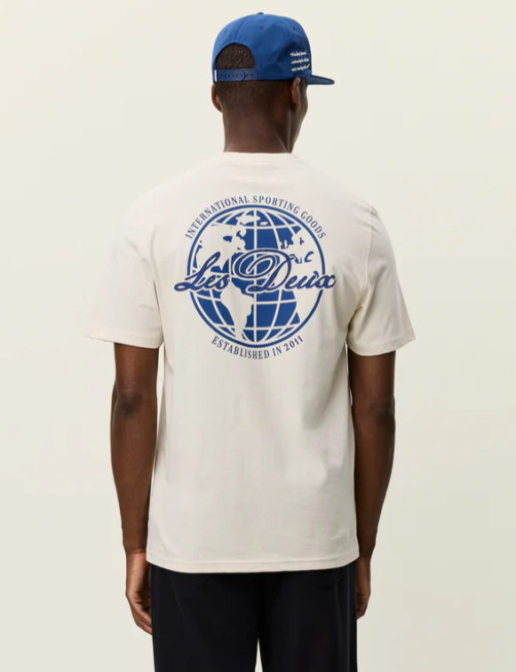 La camiseta Ben Globe tiene un corte regular, está hecha de algodón orgánico y presenta estampados de temporada en el pecho y la espalda.