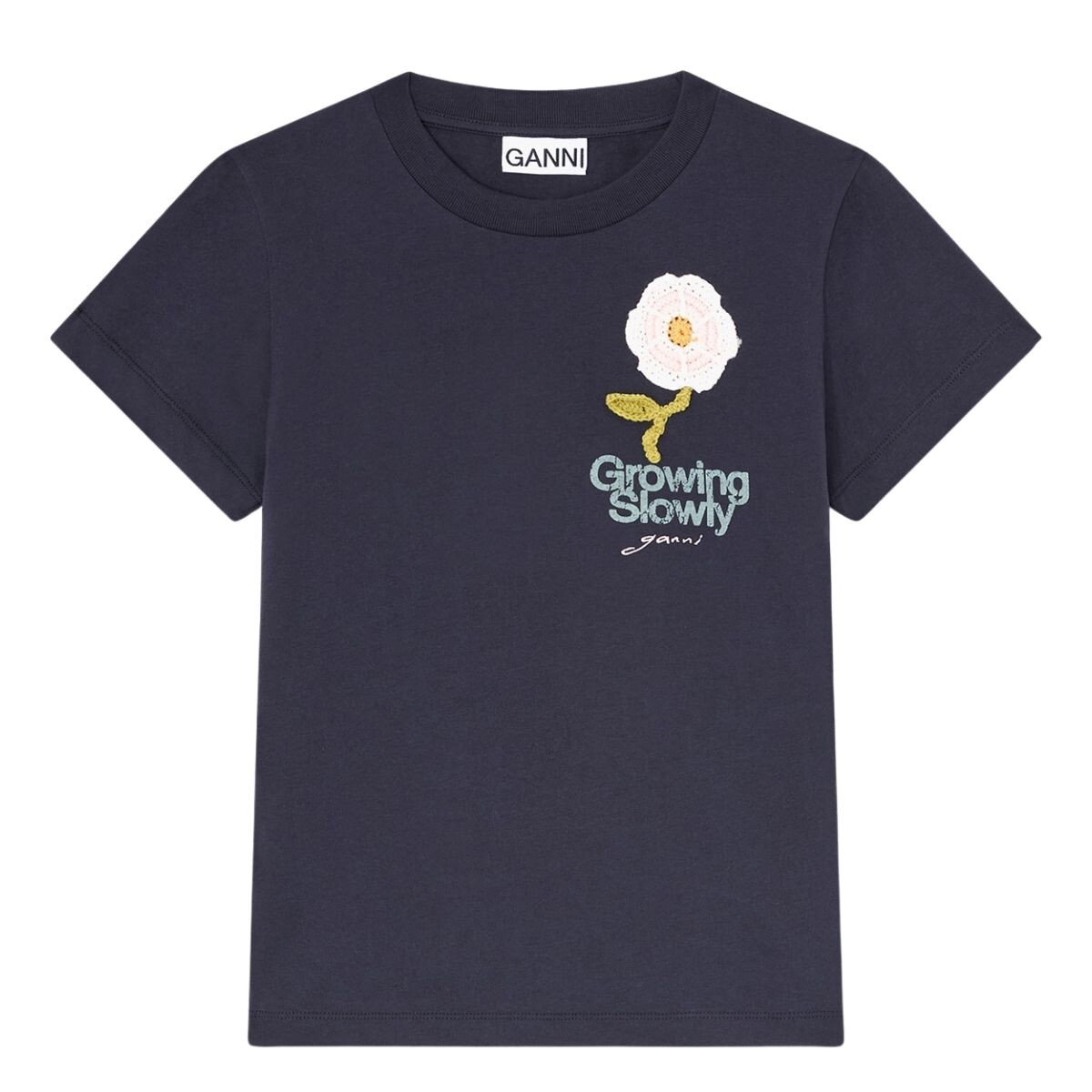 Camiseta Ganni -Baby Fit Crochet Patch Phantom
