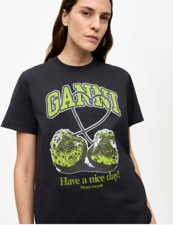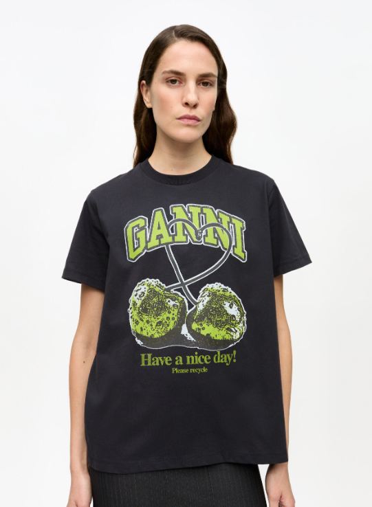 Camiseta Ganni negra cereza verde Camiseta Ganni negra cereza verde Camiseta Ganni negra cereza verde