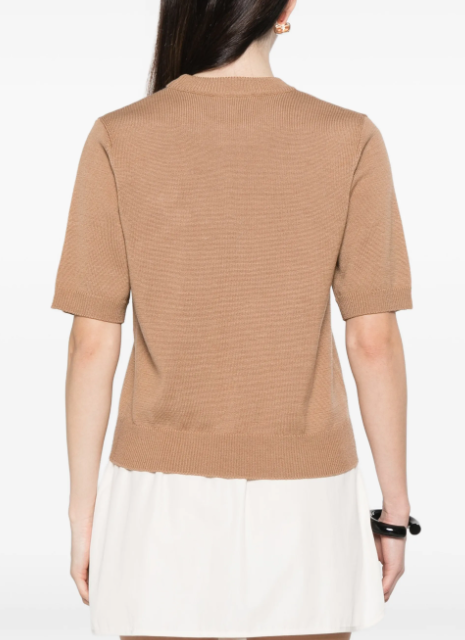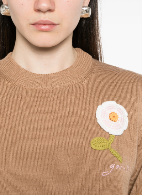 GANNI jersey con aplique floral tobacco brown