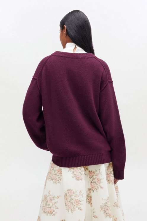 4. Jersey de cuello en V de mezcla de lana burdeos