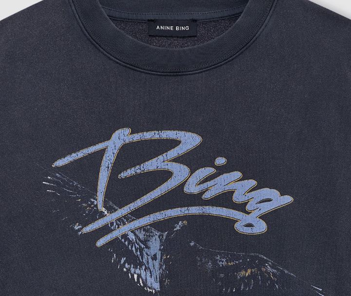 Sudadera de Anine Bing en color Washed Black con estampado en la parte delantera con la firma 'Bing' y águila gráfica.