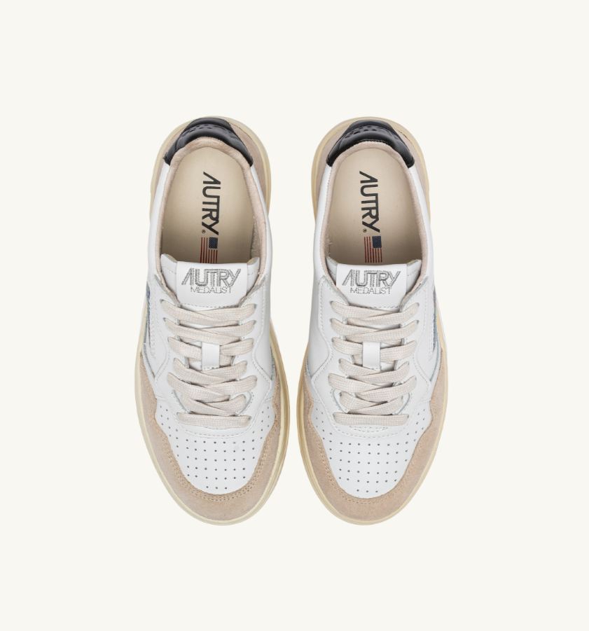 ZAPATILLAS MEDALIST LOW DE PIEL BLANCA Y NEGRA Y ANTE BEIGE