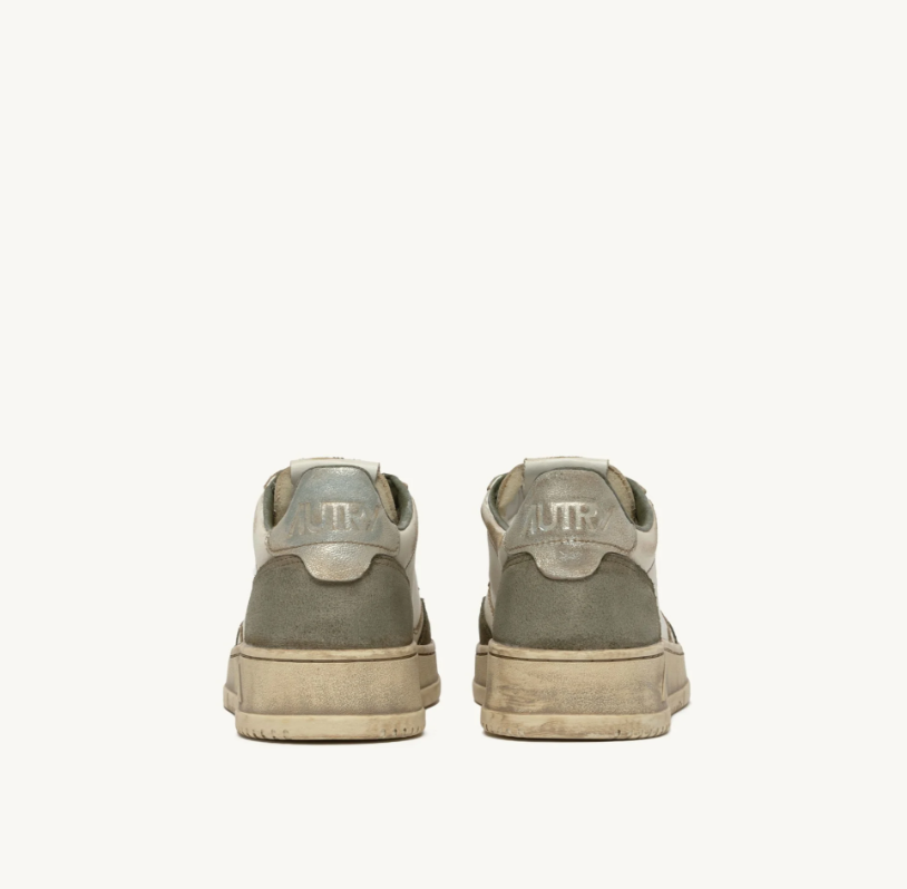 ZAPATILLAS MEDALIST LOW SUPER VINTAGE DE PIEL BLANCA Y PLATEADA Y ANTE LIZARD