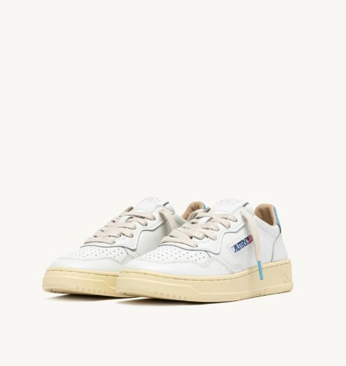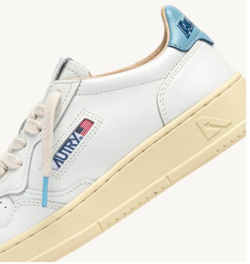El contrafuerte de piel celeste, el detalle lateral de jacquard y la etiqueta cosida en la lengüeta están personalizados con el logotipo de Autry, para un toque adicional de autenticidad, mientras que la suela de goma marca el ritmo de tus pasos.