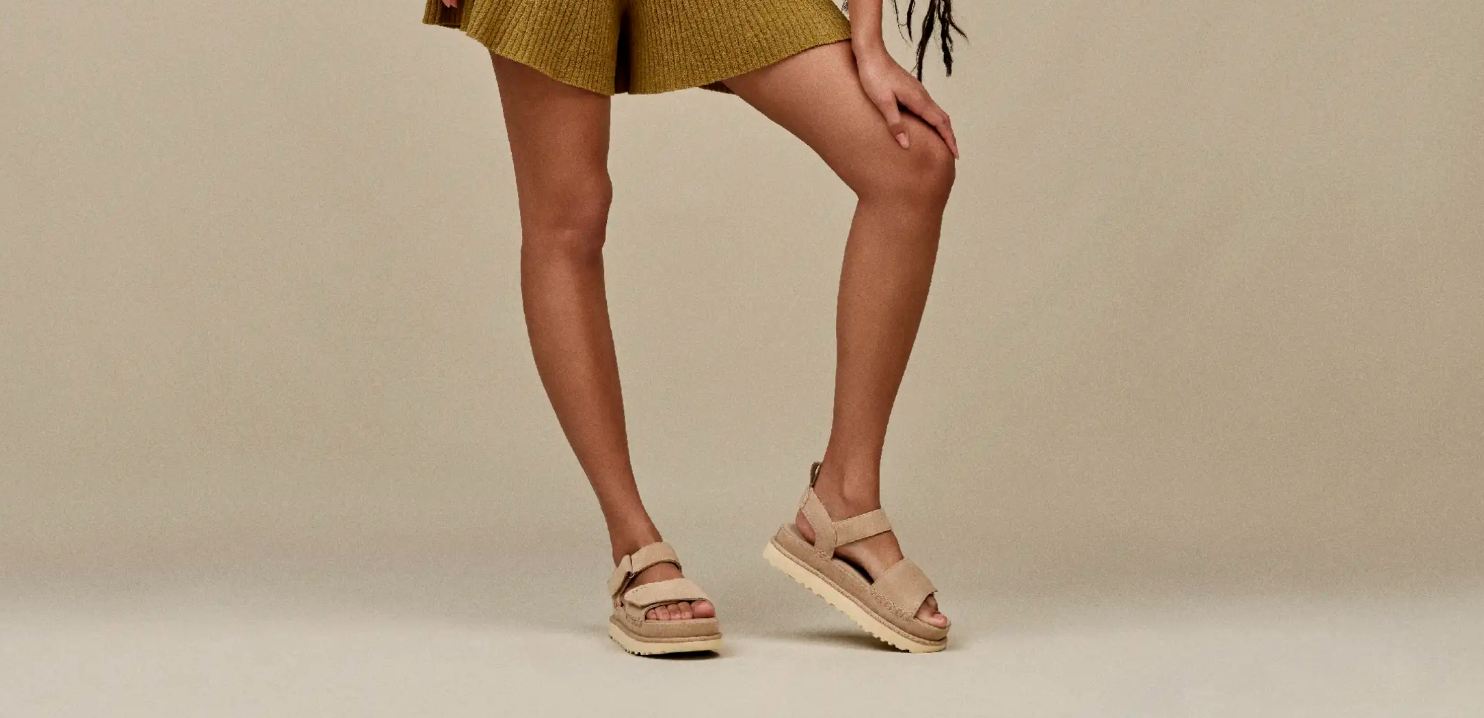 Eres toda una estrella. Deslumbras como las Goldenstar, esas sandalias que lo tienen todo. Con ellas, tendrás la misma sensación de comodidad que con las botas Classic UGG®. Se confeccionan con ante aterciopelado e incorporan una plantilla de espuma ultraacolchada de gran sujeción, además de una suela ligera que facilita llevarlas todo el día. Incluyen dos juegos de correas ajustables que proporcionan un ajuste ideal para estar cómoda los días más ajetreados No te quedes atrás, las Goldenstar tienen que ser tuyas. La suela de este producto es una suela Treadlite by UGG™, o bien una suela de goma EVA, un compuesto responsable con espuma de caña de azúcar que nos permite reducir la dependencia de los combustibles fósiles sustituyendo el etileno derivado del petróleo. Este producto se fabrica en una fábrica que apoya a las mujeres de nuestra cadena de suministro con la ayuda del proyecto HERproject. Esta iniciativa colaborativa crea asociaciones con marcas como la nuestra para empoderar y formar a las mujeres en el lugar de trabajo.