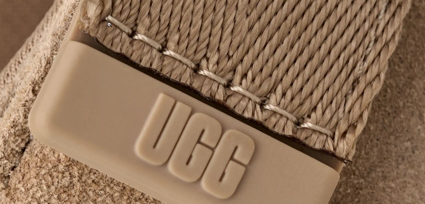 Tira ajustable en el talón, cierre de velcro, extremo de la tira de TPU con letras UGG®