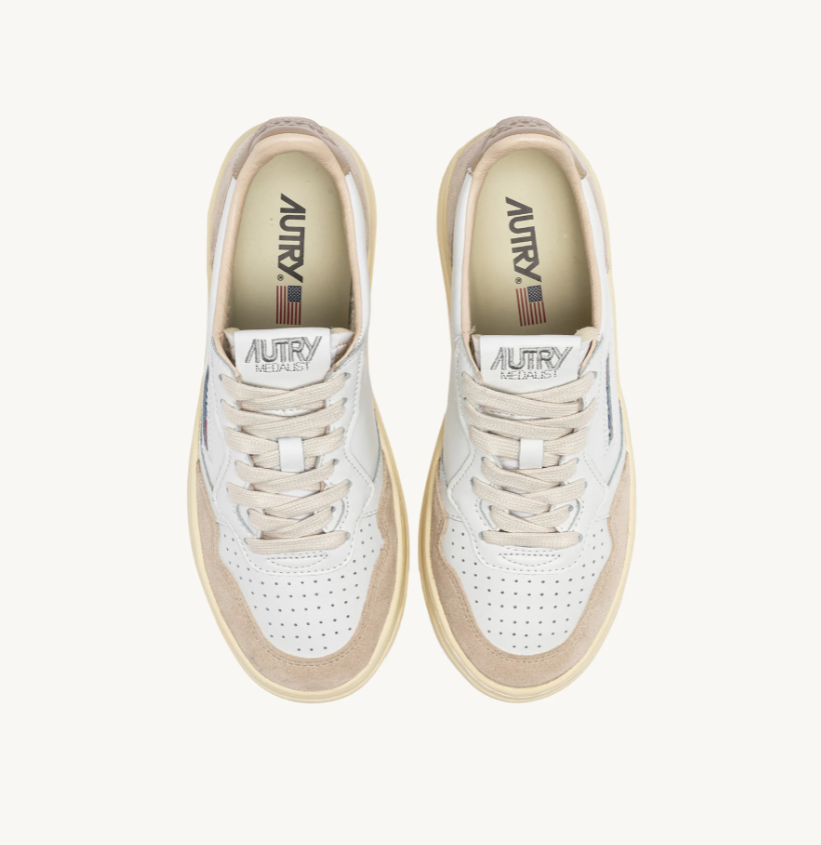MEDALIST LOW EN PIEL BLANCA/NEGRA PIMIENTA Y ANTE BEIGE