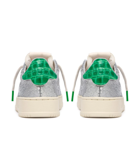 Luce con estilo con las zapatillas DALLAS LOW WOM, con elegantes lentejuelas plateadas y una llamativa parte trasera verde con relieve de cocodrilo. Estas zapatillas combinan alegres toques de color con una silueta refinada, perfectas para realzar cualquier look casual con un toque de sofisticación.