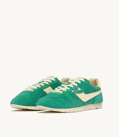 Realizada en suave piel de ante con efecto desgastado y detalles de piel en los laterales y en la parte trasera, la Windspin presenta una silueta estilizada. Su perfil plano y dinámico encarna a la perfección la mezcla característica de encanto vintage y modernidad de Autry. La suela de goma ultraplana garantiza un excelente agarre en todas las superficies urbanas.