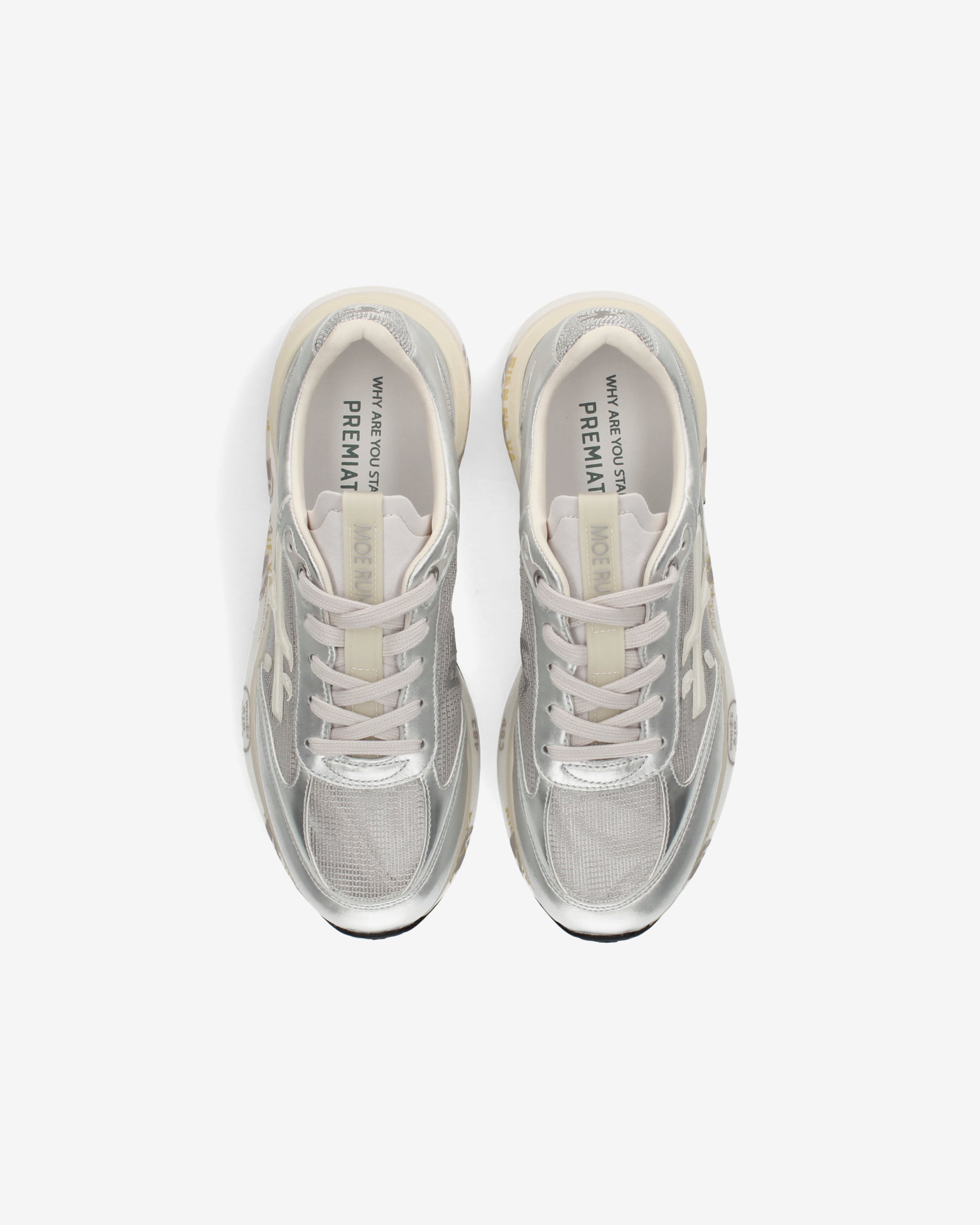 Diseñado para impresionar. El Moerun se basa en la ligereza de movimiento, la estabilidad y la amortiguación que proporciona su innovadora suela. La nueva silueta está repleta de detalles: logotipo en el exterior, letras PREMIATA en el interior y el nombre del modelo en la etiqueta.