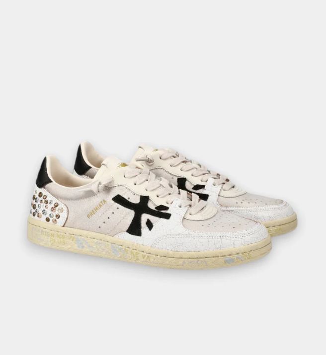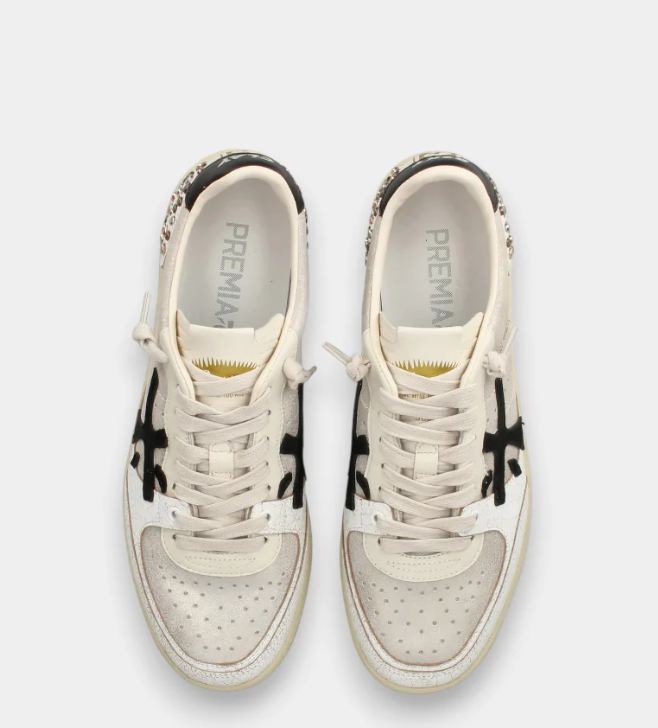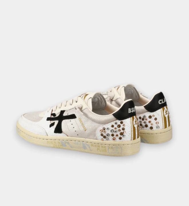 Las zapatillas BSKT Clayd 7661 en tonos beige, blanco y negro presentan un diseño robusto y actual.